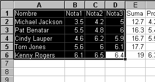 Vamos a realizar una pequeña planilla de alumnos y su respectivas notas, para ello, llenaremos las celdas como indica la figura siguiente: